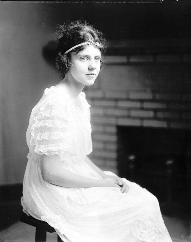 Portrait of a young woman, seated.