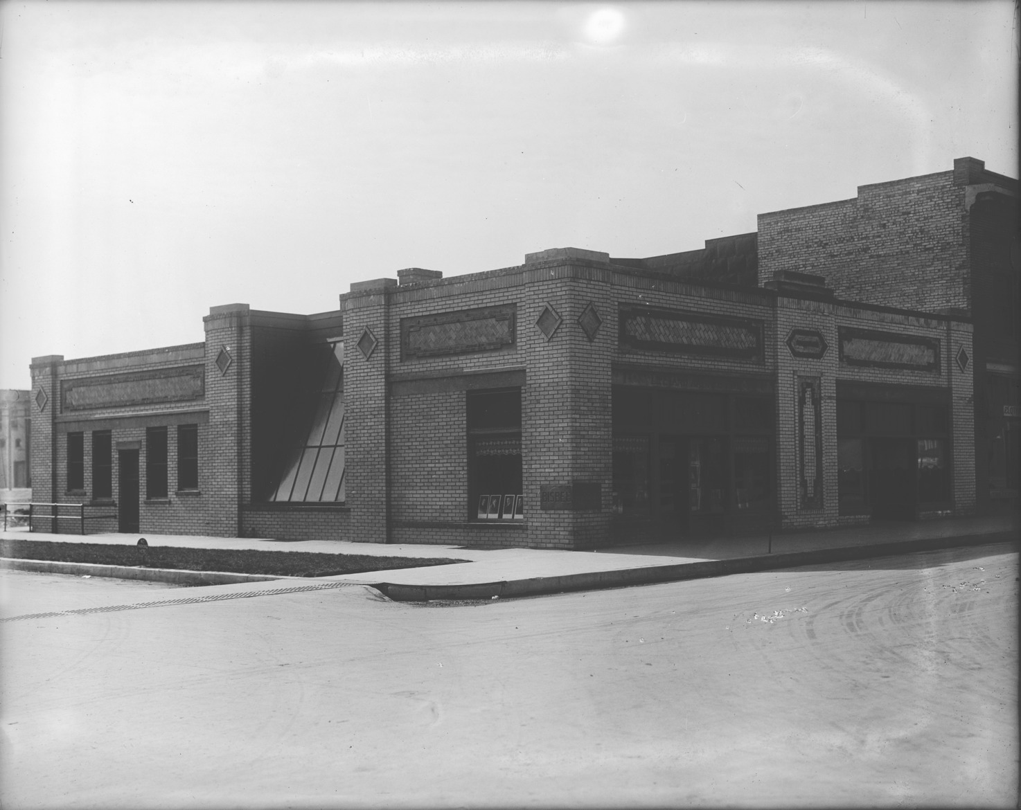 - Exterior view of the Bisbee Studio with addition, looking south at the corner of 2nd Ave East and 2nd St East (now Hansen St E.).`