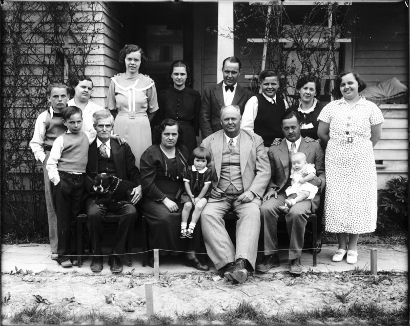- Portrait of the Pratt family; possibly taken at the Pratt Lumber Co, on Addison Ave; business on main floor, family lived on second; date given as 1935.