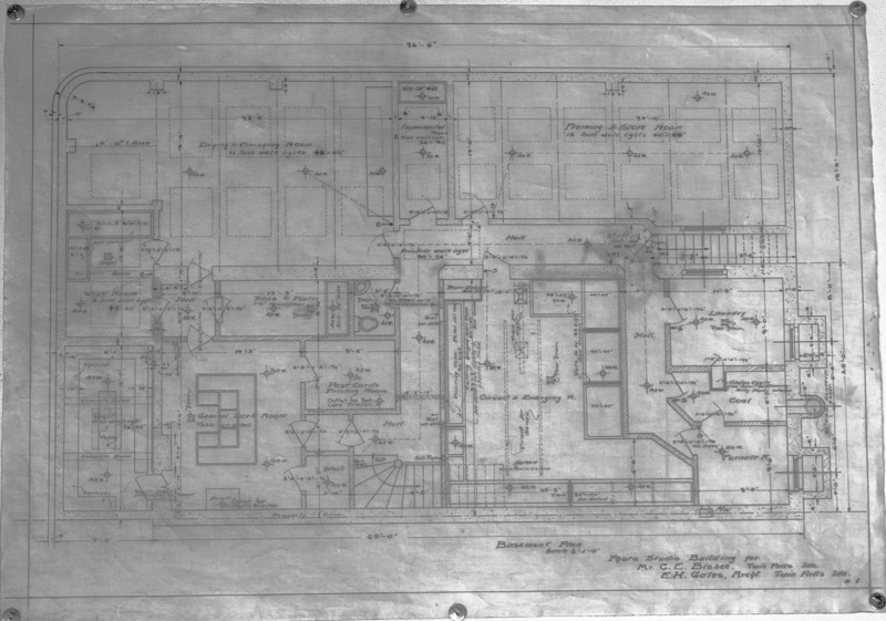 Blueprints for the basement of the Bisbee Studio. Plans drafted by Twin Falls architect Ernest Gates.