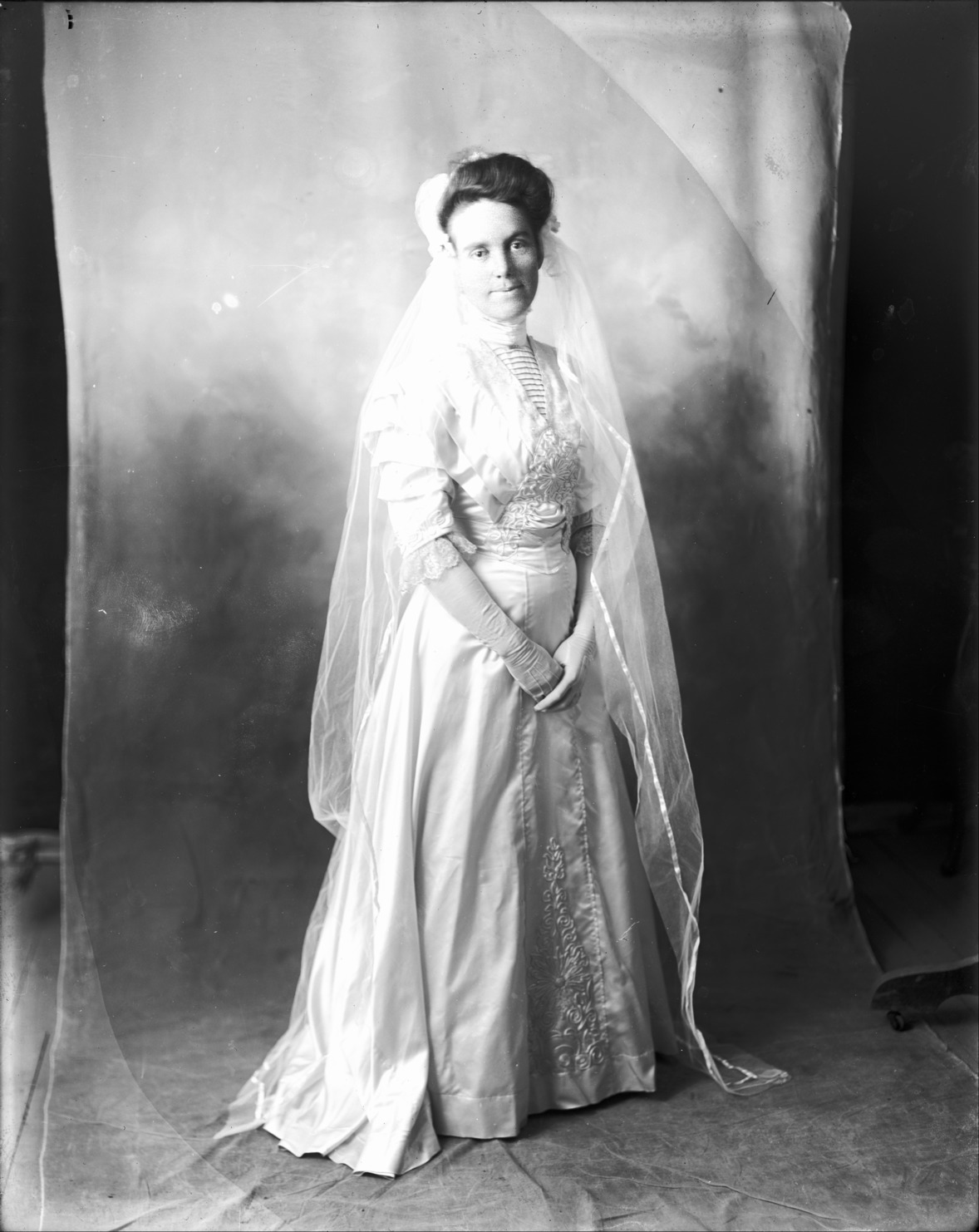 Portrait of Jessie Bisbee in a wedding dress.