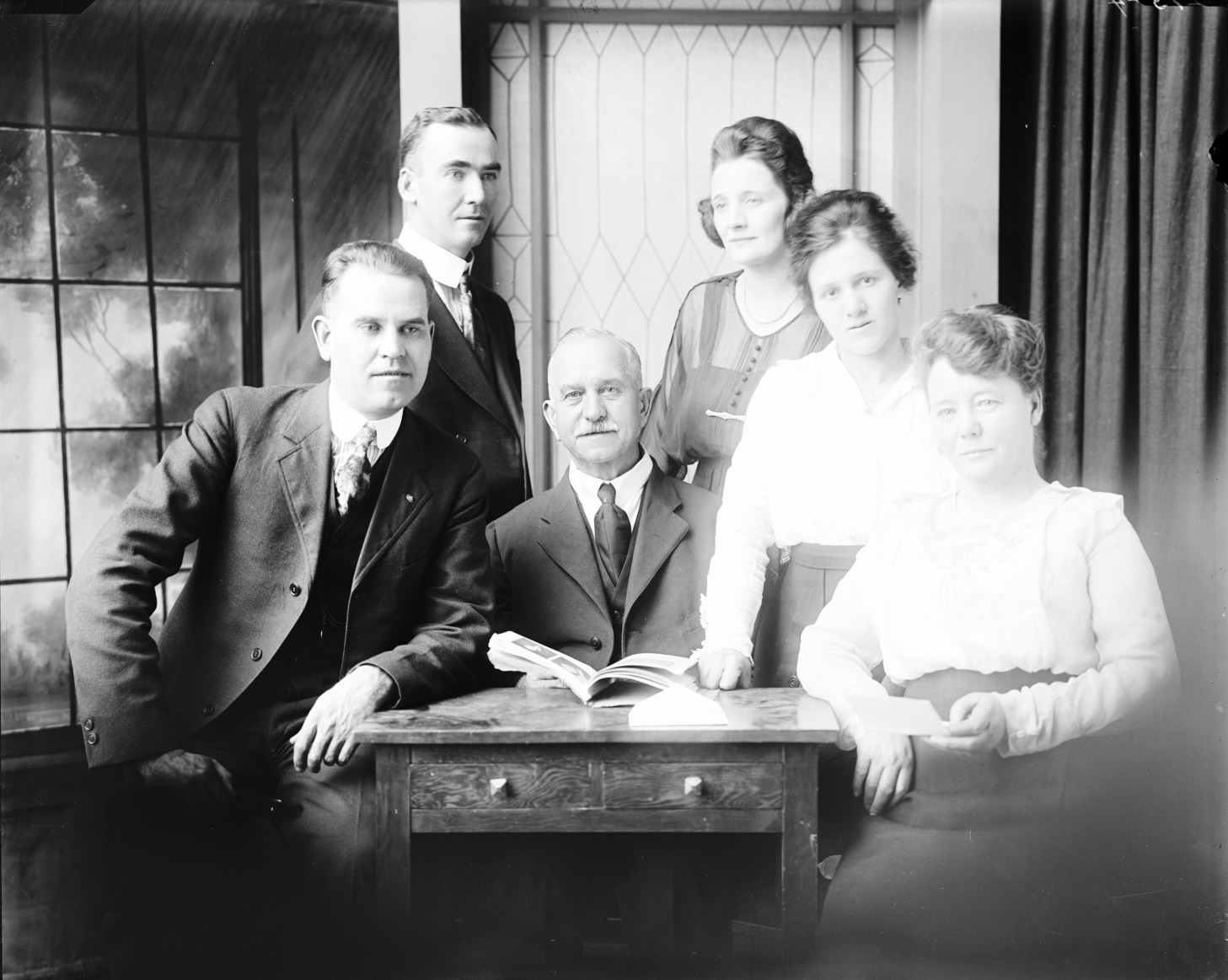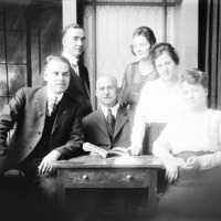 - Portrait of three men and three women.