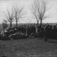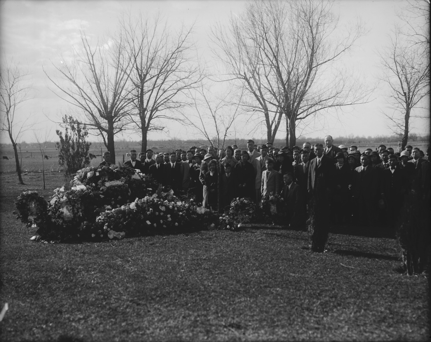 Funeral service at gravesite, with a majority Japanese-American attendees.