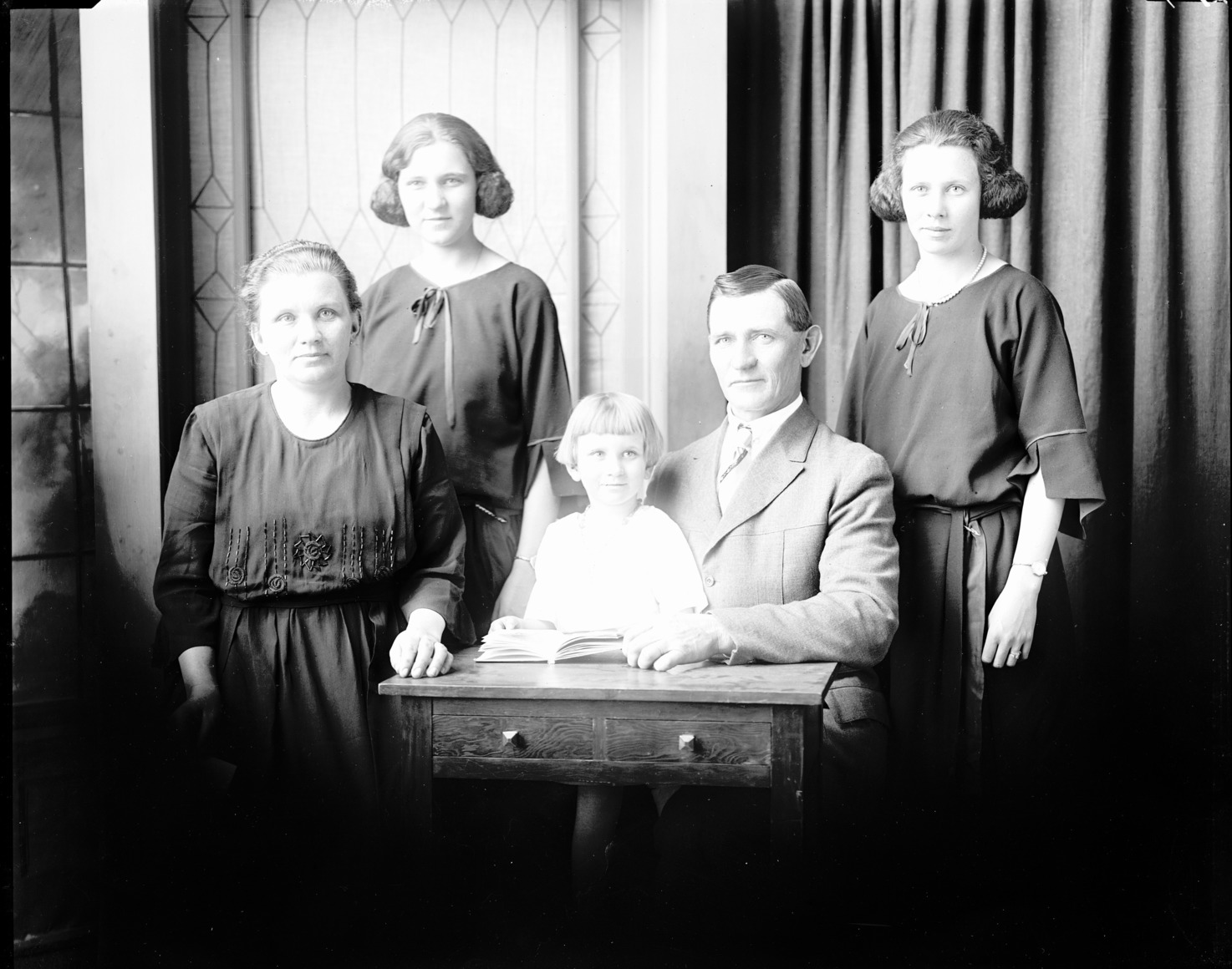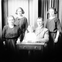 Portrait of a family with one women, one man, and three girls.