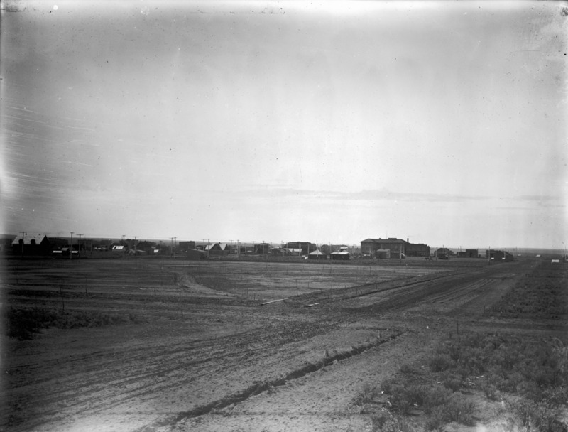 - A wide view of early Twin Falls, looking southwest. The Hotel Perrine is on the center right.