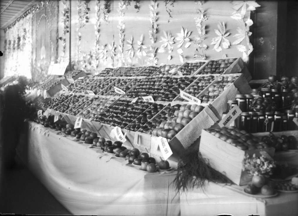 - Display of boxes of apples at the Twin Falls County Fruit Fair.