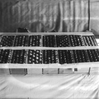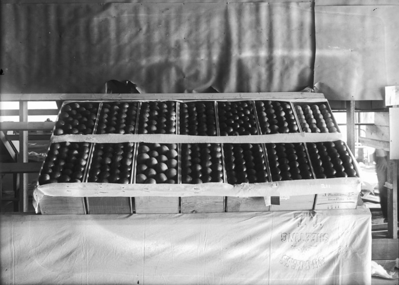 - A display of boxes of apples. One carton reads "J. Hammons and Son; Twin Falls, Ida; 1911"