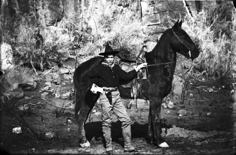 - A cowboy poses beside his horse