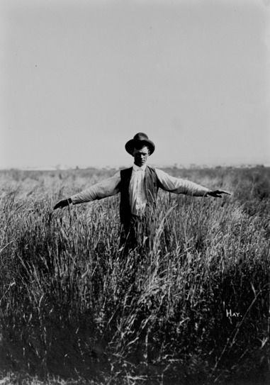 - "Hay;" a man stands in a hay field, with arms outstretched.