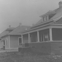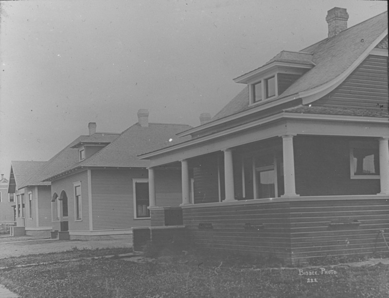 - Four new houses, one with grass yard.