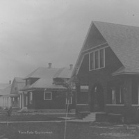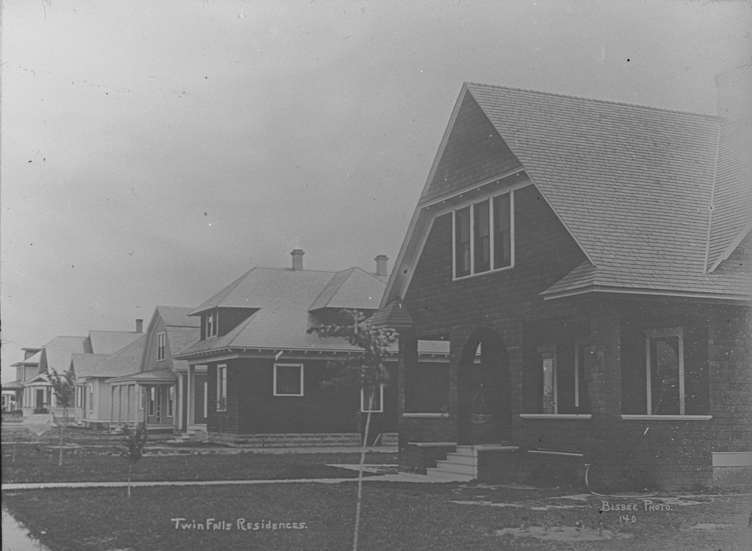 "Twin Falls Residences;" six new houses on a single block, with newly planted trees.