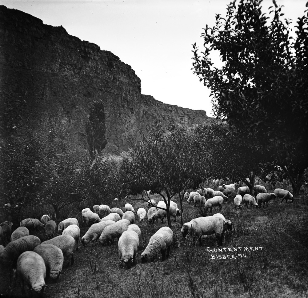 - "Contentment;" sheep grazing in the canyon