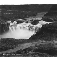 "Shoshone Falls;" wide view of the Falls at high flow; from above the falls on the canyon.