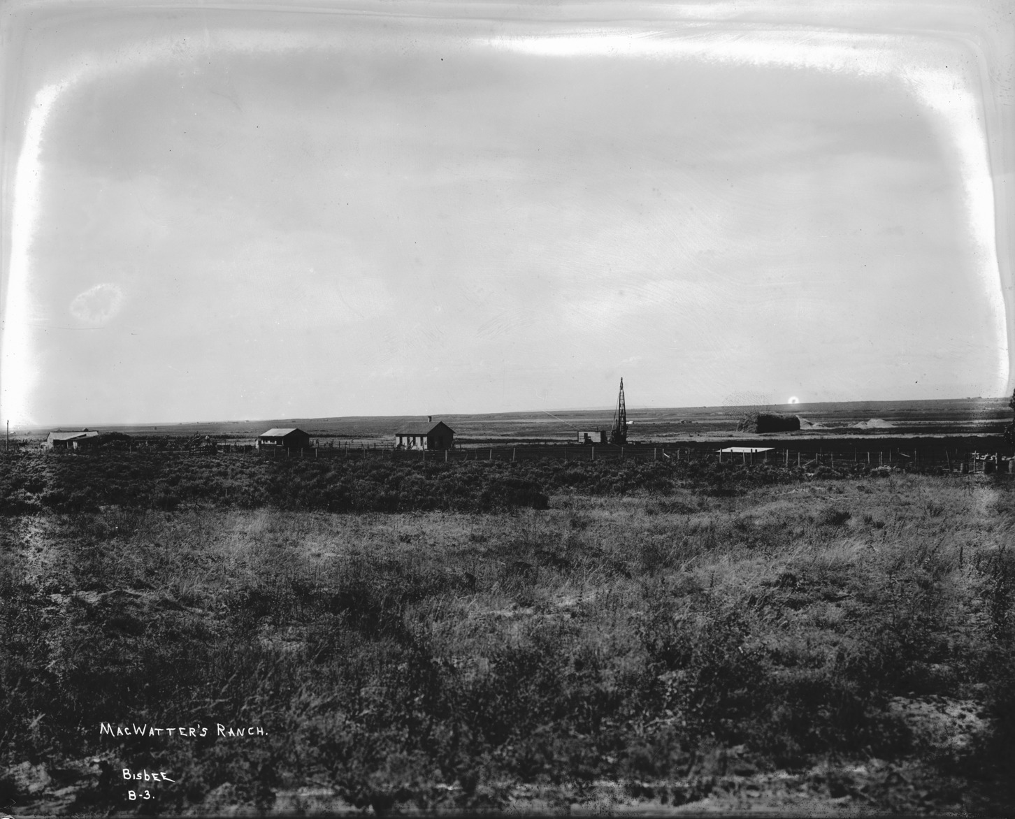 "MacWatter's Ranch;" the farmstead, a house, and several outbuildings, in an open plain.