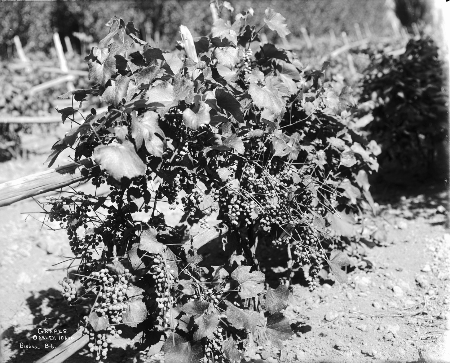"Grapes. Oakley, Idaho;" grapes growing along a wooden fence