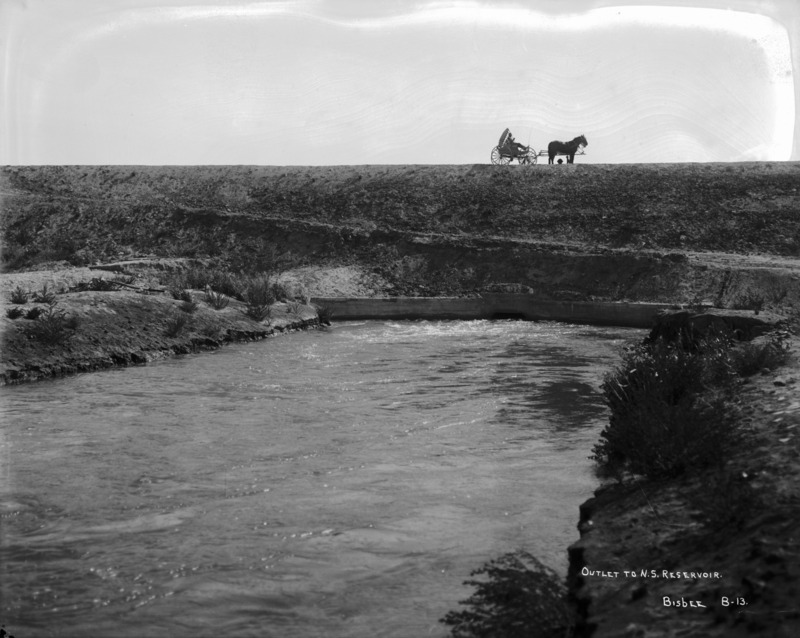 - "Outlet to N. S. Reservoir;" a horse-drawn buggy on the hillside above a North Side canal.
