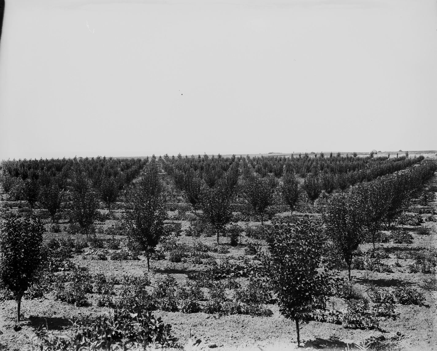 - "Three Year Old Orchard; M.F. Reik, North Side;" rows of trees in orchard