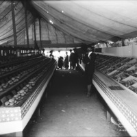 - "Tri-County Fair; October 1,2,3, 1913; Jerome, Idaho;" several people stand near a produce display in a large tent