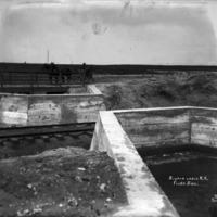 - "Siphon Under R.R., North Side;" a man in a horse-drawn buggy is parked on a lane near the siphon that goes beneath the railroad tracks.
