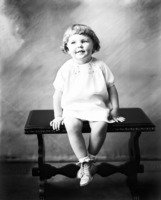 1831 A portrait of a little girl, seated on a bench.
