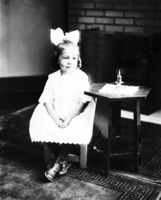 1684 Portrait of a young girl, a big bow in her hair, seated beside a table with a lighted candle.